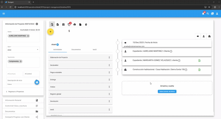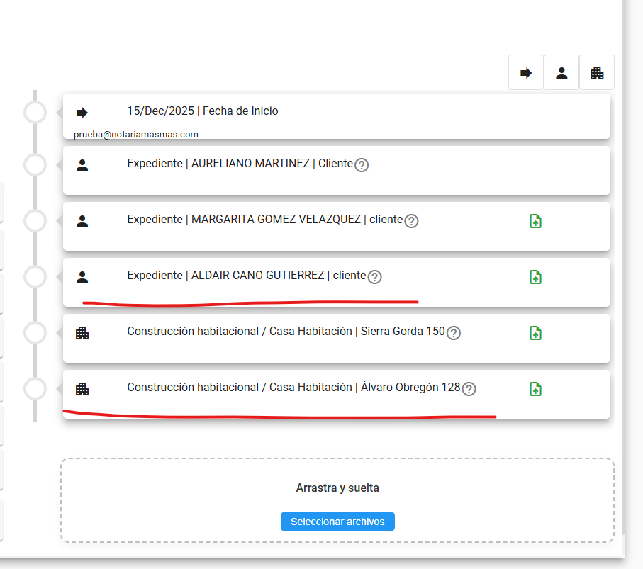- Al finalizar la subida de los documentos, se actualizara la linea del tiempo donde se mostrara la información que pudo ser extraida.
